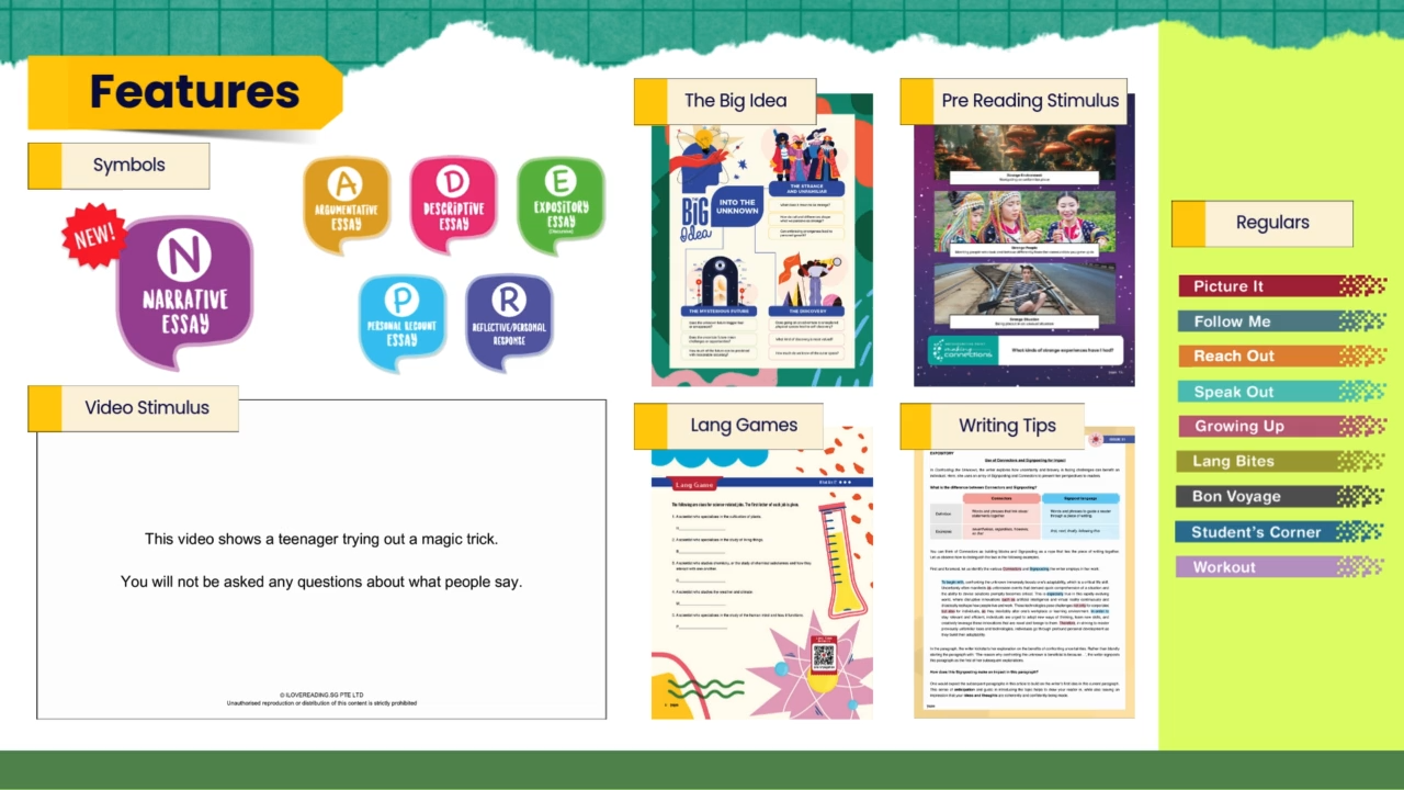 Developed by experienced educators aligned with the national-level exam formats and marking rubrics, Inspire is also a trusted English enrichment resource designed for secondary students preparing for exams like O-Levels, IGCSE, HKDSEE, or International Baccalaureate (IB). Each issue helps to build exam-ready skills through thought-provoking and relevant themes for teens, providing structured practice in: