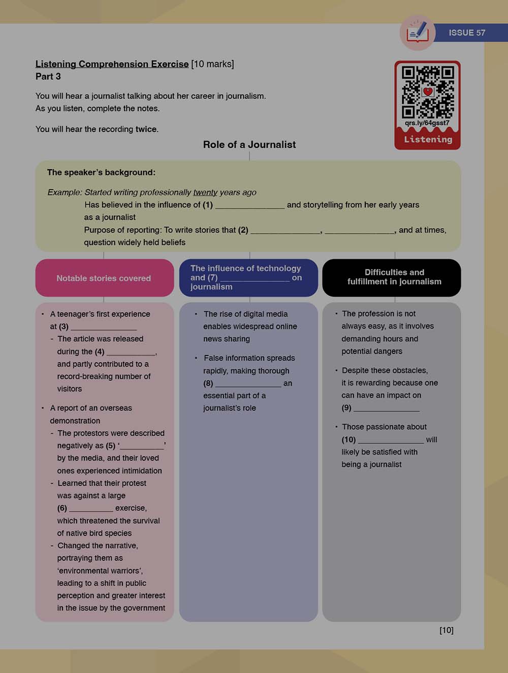 With each issue, students will: